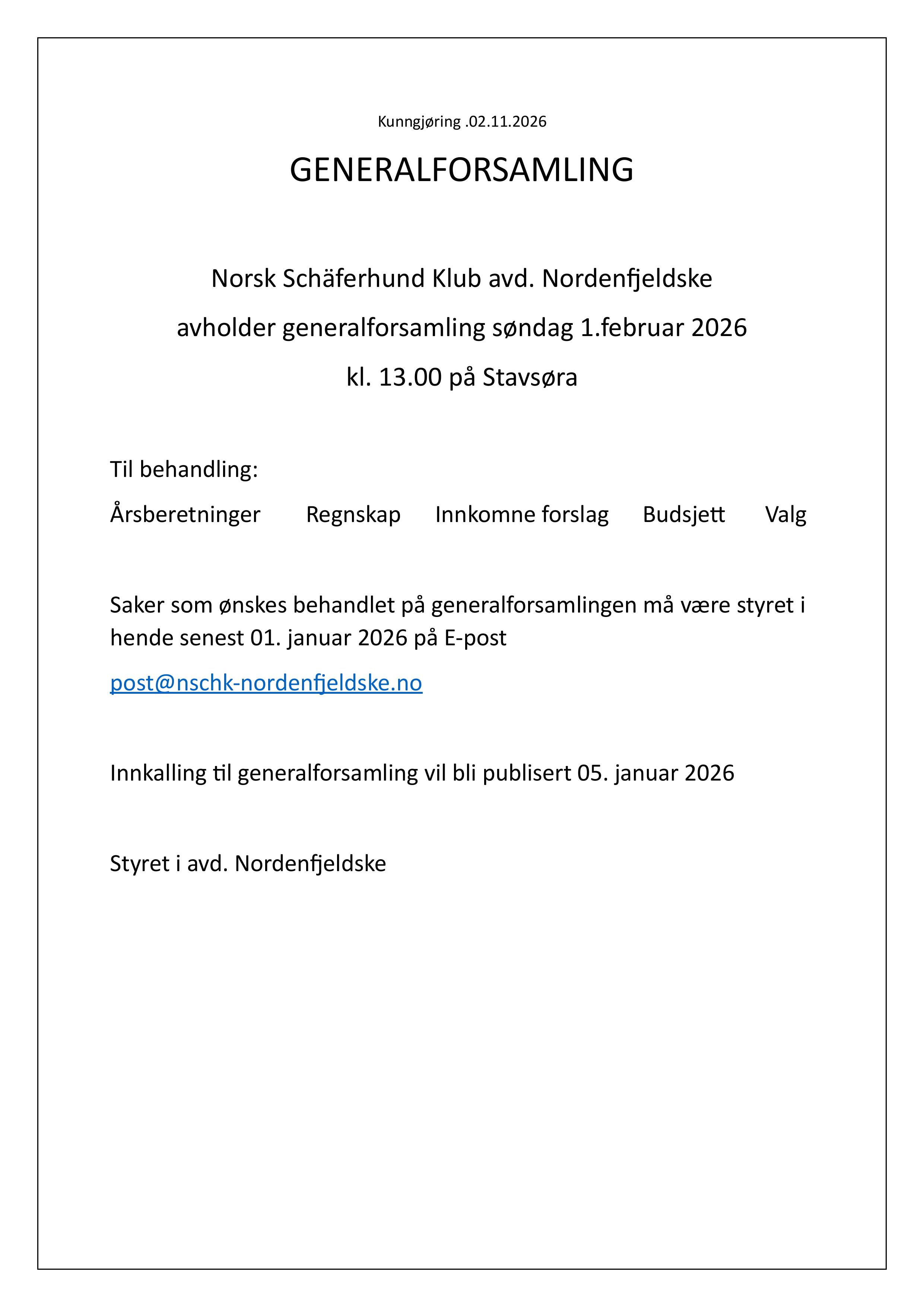 Her kommer en påminnelse om at vaffelpressa går helt til søndag 23.11.25, UNNTATT søndag 16.11. Det er Nosework kurs inne i klubbhuset, fra fredag til søndag den helga.